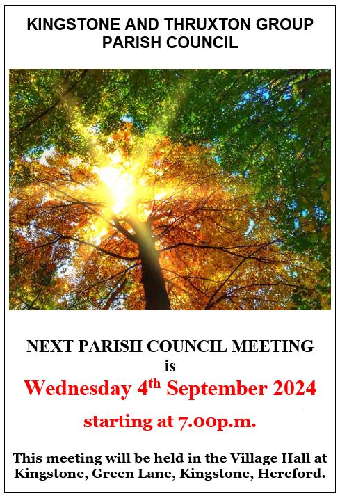 This meeting will be held in the Village Hall, Green Lane, Kingstone, Hereford.